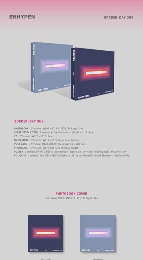 Enhypen Enhypen Border Day One Album Dawn Ver 1p Cd 1p Poster 136p Photo Book 6p Clear Story Cover 1p Book Mark 8p Post Card 2p Photo Card Tracking Code K Pop Sealed Amazon Com Music